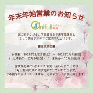 【年末年始営業のお知らせ】