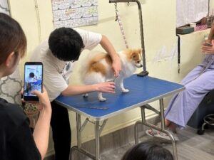 二頭目はポメラニアンのオールシザーカットで、日本でも人気な桃尻カットを中心に解説しました。